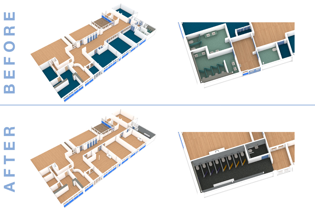 The works included a reorganisation of the existing circulation; an increase in the size of the existing classrooms by 20-30%; new WC facilities; concealed cloak and storage areas; a new playground entrance; and a general refurbishment throughout.