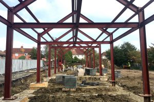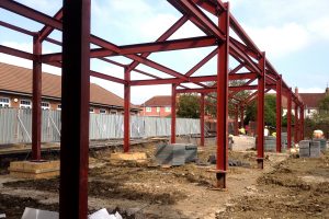 Our Filton Avenue Primary School dining hall is progressing well on site. The steel frame is up and the we were able to get our first glances into the volume created. The extra floor space is desperately needed by the school.