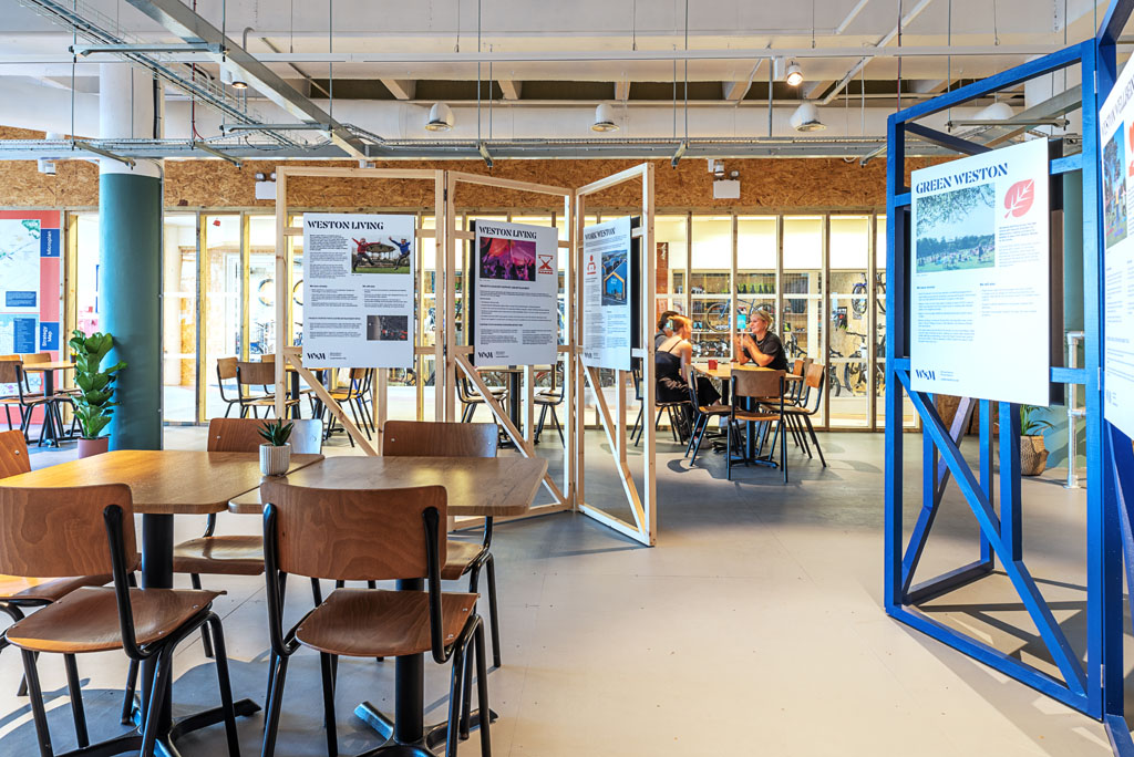 Created for client North Somerset Council, the project includes new studio spaces, a cafe, bike shop and an event space.
