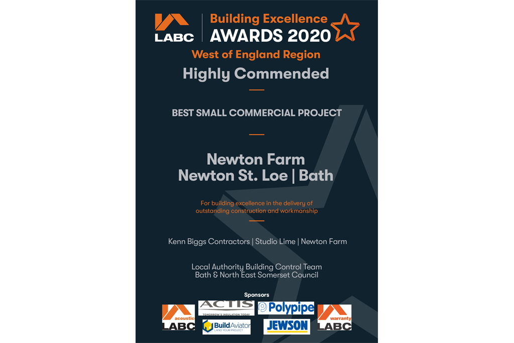 We were delighted to receive a highly commended award for our extension at Newton Farm Foods at the Bath & North East Somerset LABC awards.
