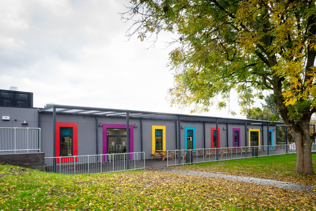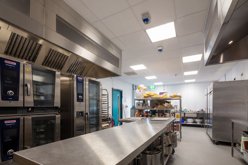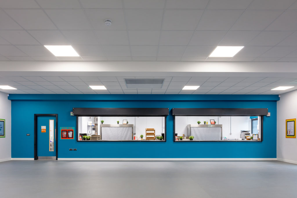 The building includes: a large, flexible dining hall; outdoor seating; pupil was; and a commercial kitchen.