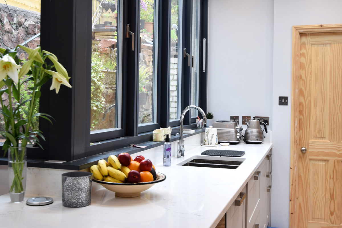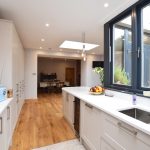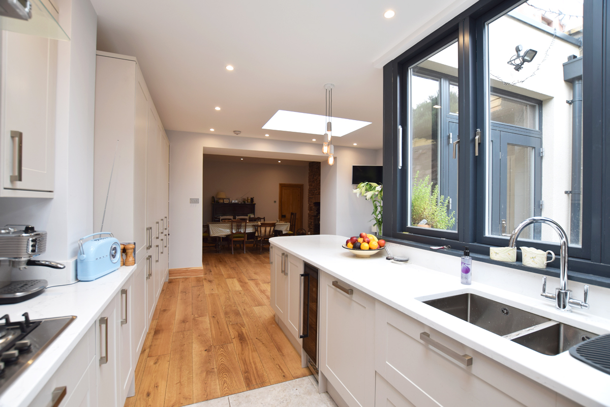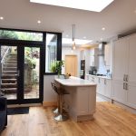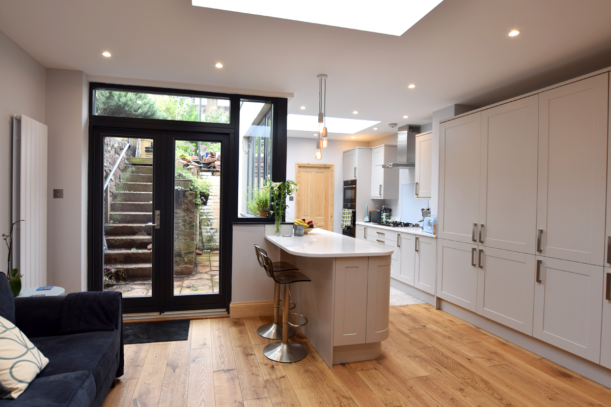 The project in Clifton, Bristol featured the removal of a small existing extension and the addition of a much larger open plan living space. The result is spacious and light with a large expanse of glazing to the rear courtyard garden. This modern addition seamlessly connects to the existing Victorian terrace with a large framed opening, this allows an original 19th Century fireplace to be part of the space.
