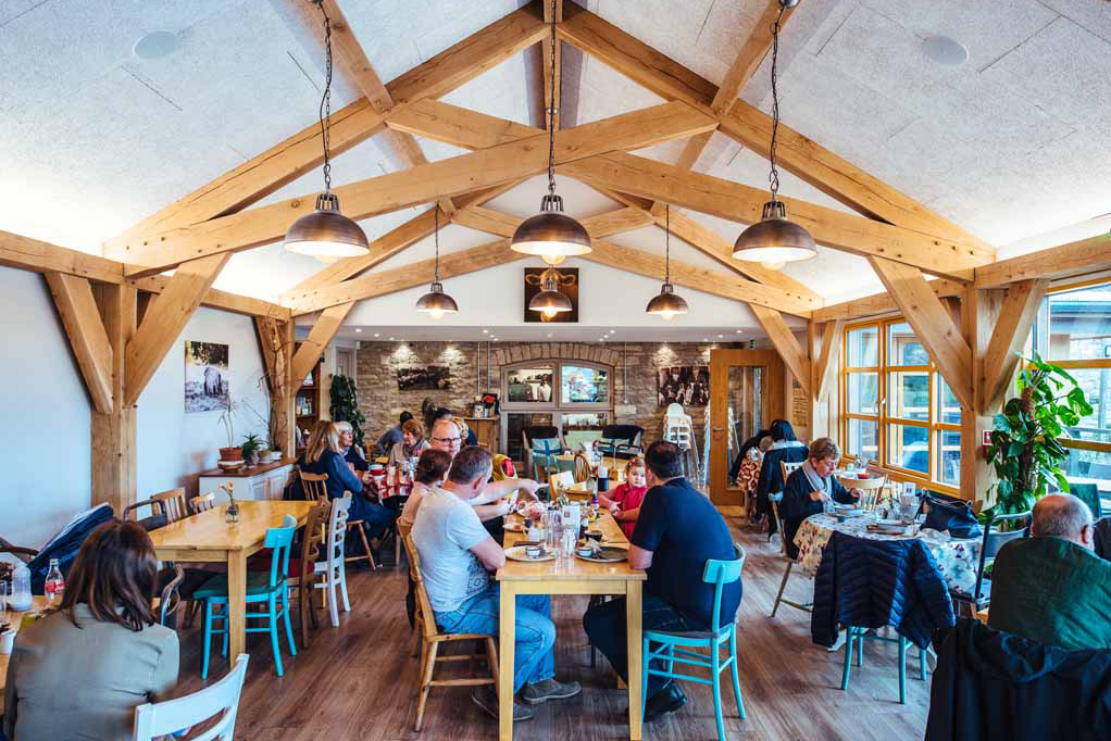 The building includes a handcrafted, scissor trussed oak frame, combined with a highly efficient SIPS panel envelope. It provides much needed seating space for this well loved Grade 2 listed site.
