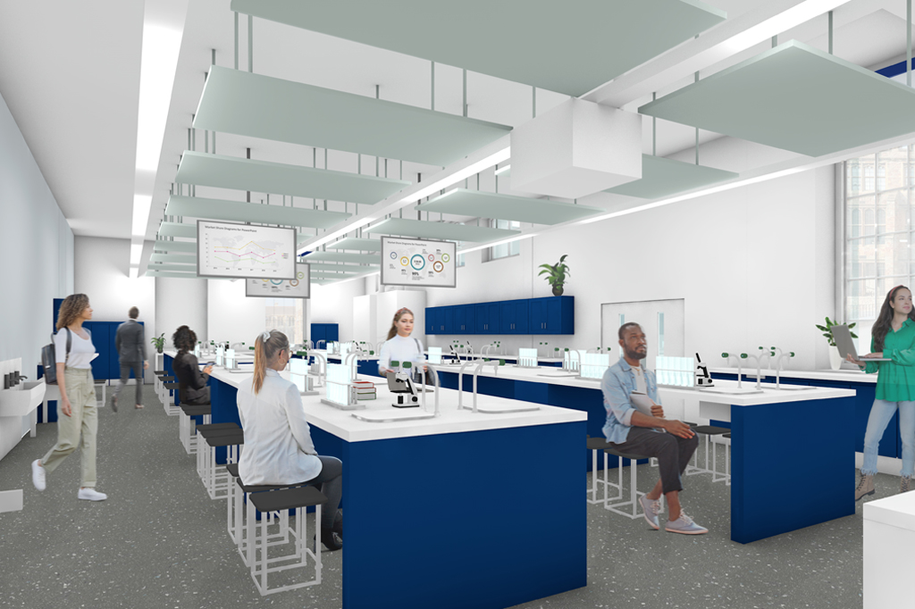 The project involves the combining off two existing teaching spaces into a single large lab space with a complete refurbishment, restoration of the heritage assets, new building services, new Benching, new AV and improved fire stopping.